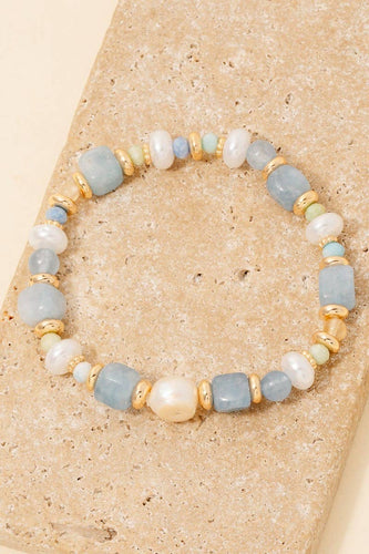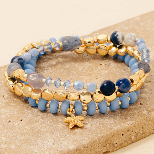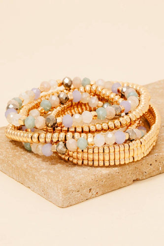 Mixed Beads And Metallic Coil Elastic Bracelet Set