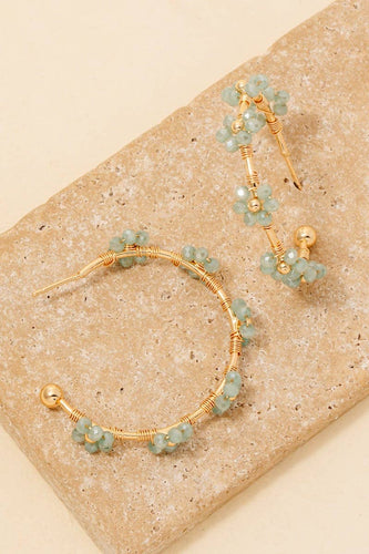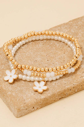 Rectangle Gem And Disc Charm Beaded Bracelet Set