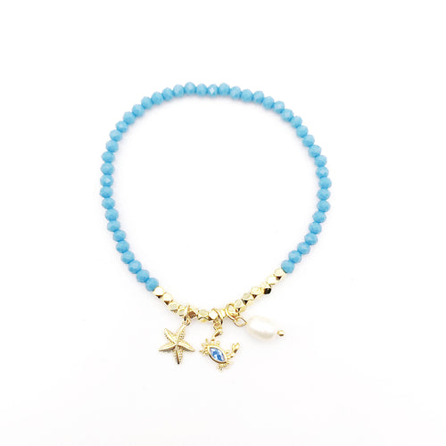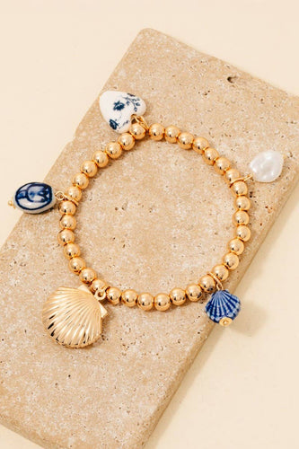 Ceramic Floral Heart Shell And Pearl Charms Beaded Bracelet