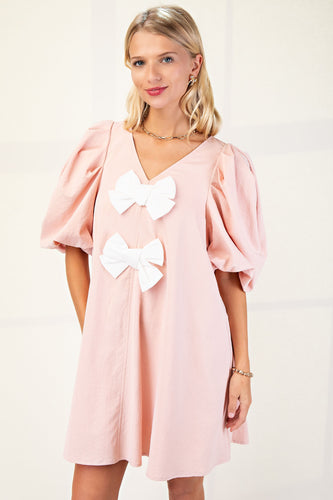 A-Line Mini Dress with White Bows on Front